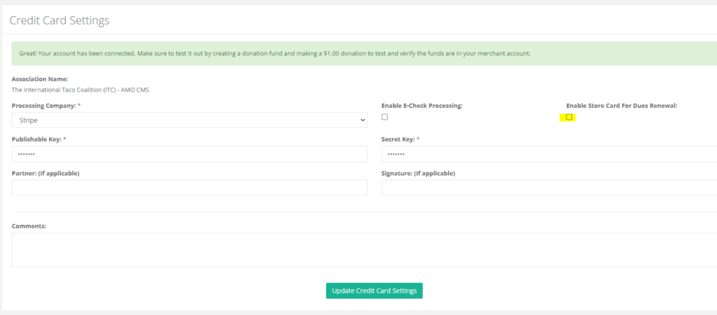 We have now upgraded Stripe to the latest Stripe JavaScript Framework for PCI Compliance and have also now added some new Auto Dues Renewal features.