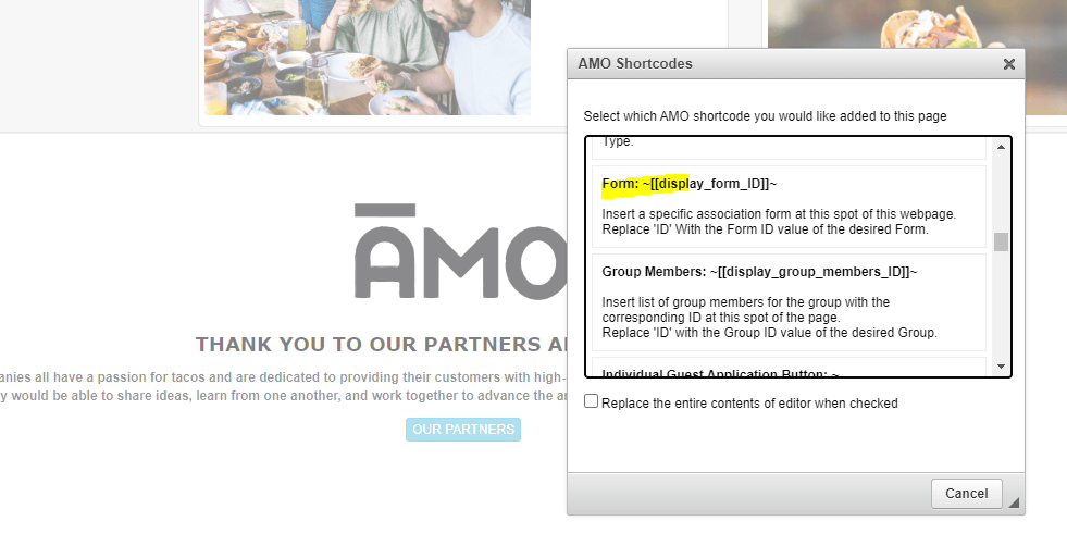 Forms that are created in AMO can now be embedded into an AMO CMS Webpage with a Shortcode, you will need to replace “ID” with your Form ID.