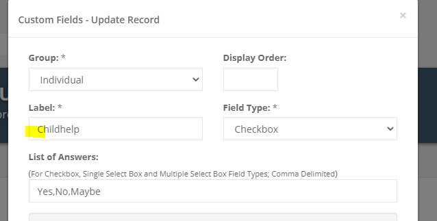 Custom Field Labels Character Limit has been increased to 400 characters to accommodate longer Custom Field Names.