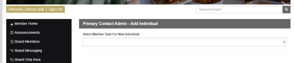 We have made an improvement to the Primary Contact > Add Individual Functionality to now let them select the Member Type when adding a new Member.