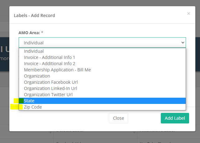 There are now new labels for Zip & State to relabel those areas throughout AMO to accommodate the International Associations