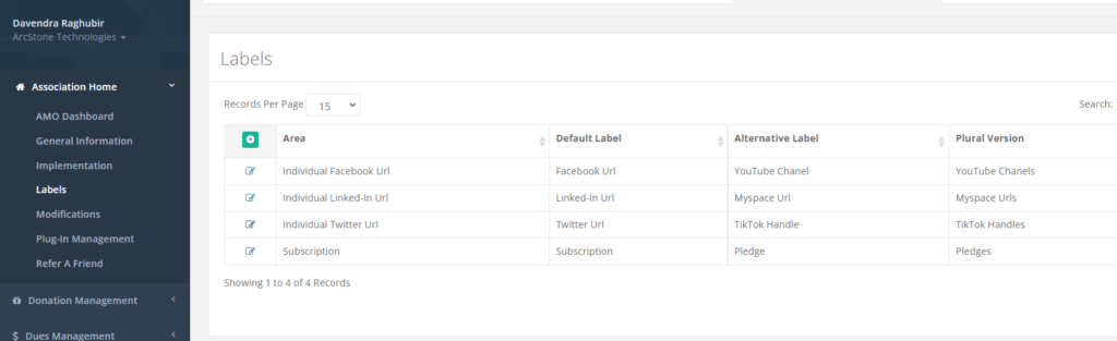 Some of you maybe familiar with our Association Home > Labels area where we can facilitiate relabeling different parts of AMO.