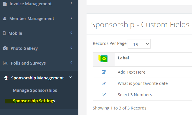 Sponsorships now have a Custom Fields area, matching the other Custom Field areas.